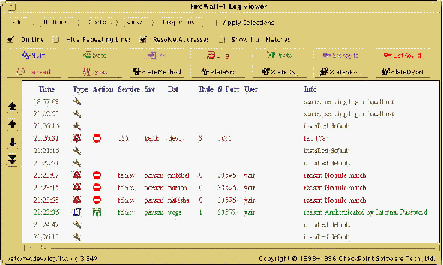 FireWall-1 позволяет записывать полную информацию о происходящих событиях (пропущенных и задержанных пакетах) в файл регистрации. Средство просмотра Файла регистрации CheckPoint FireWallЦ1 предоставляет возможность просматривать файл регистрации с помощью различных фильтров и контекстного поиска для быстрого и эффективного извлечения необходимой информации.