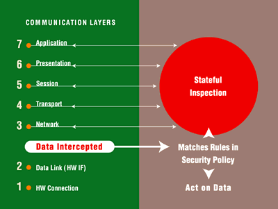 Stateful Inspection architecture intercepts, analyzes,