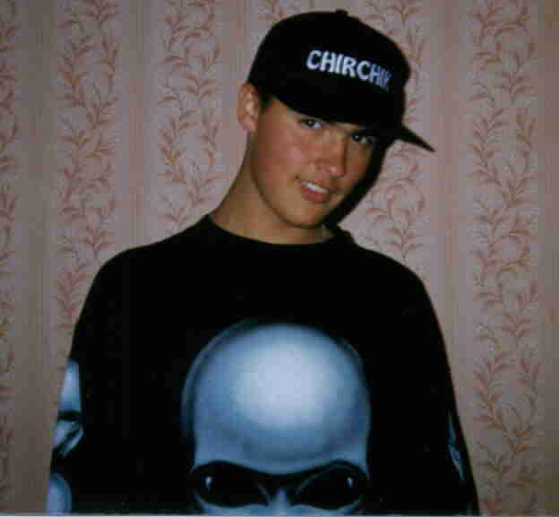 CHIRCHIK, одетый в черную футболку с изображением алиена и в черную бейсболку с белой надписью "CHIRCHIK"